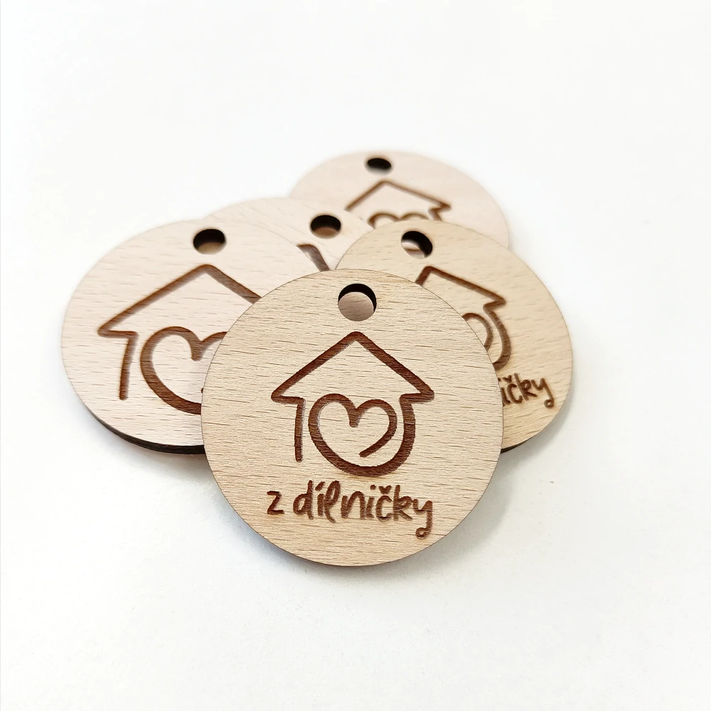 Dřevěné visačky na přání s Vaším motivem (logem, obrázkem).