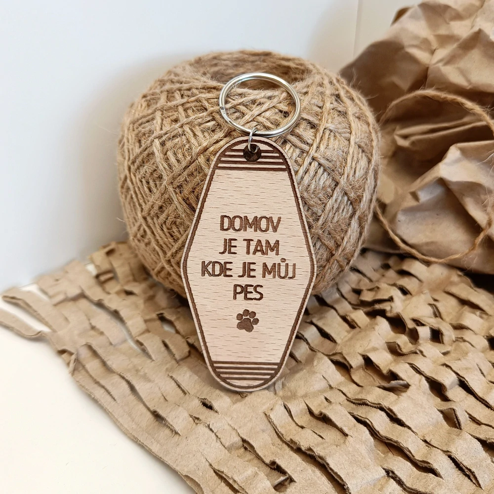 - Dřevěný přívěsek - "domov je tam, pes"