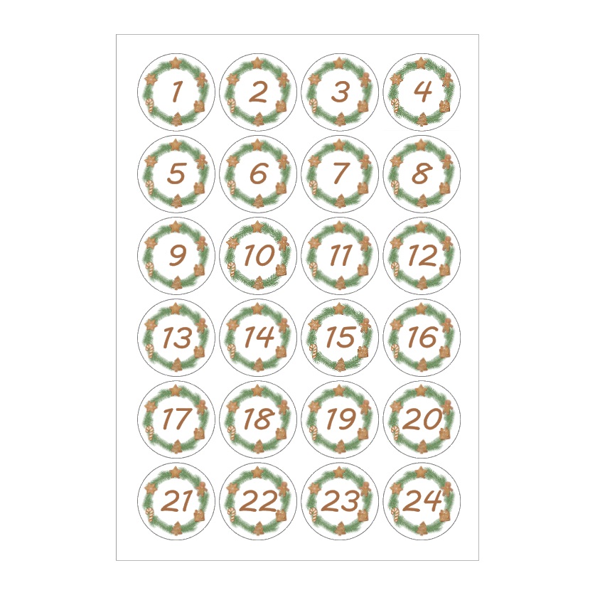 Samolepky adventní 1-24, perníčky, kruh 3,5cm (arch 24ks)Sklademcena od 40 Kč/ ks