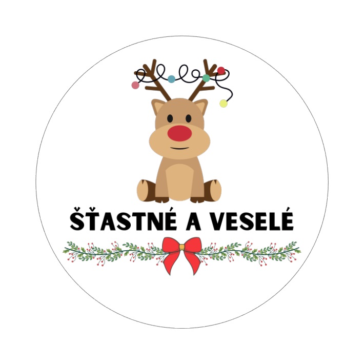 - Samolepky "šťastné a veselé" sobík, kruh 4cm (arch 20ks)
