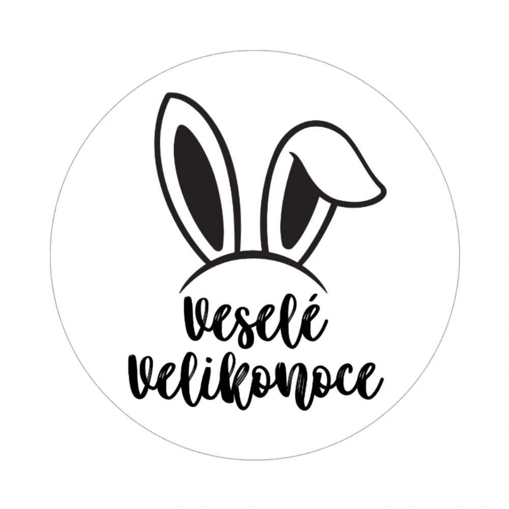Samolepky - Veselé Velikonoce - čb ouška, kruh 4cm (arch 20ks)Skladem40 Kč/ ks